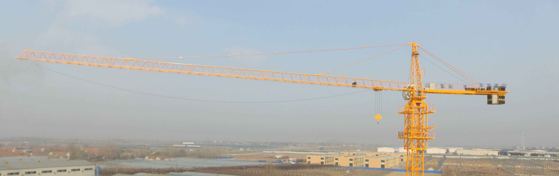 該機為平頭水平臂架、小車變幅、上回轉液壓頂升式起重機。最大起重量為6t;最大工作幅度為55米,額定起重力矩為:630KN.m.